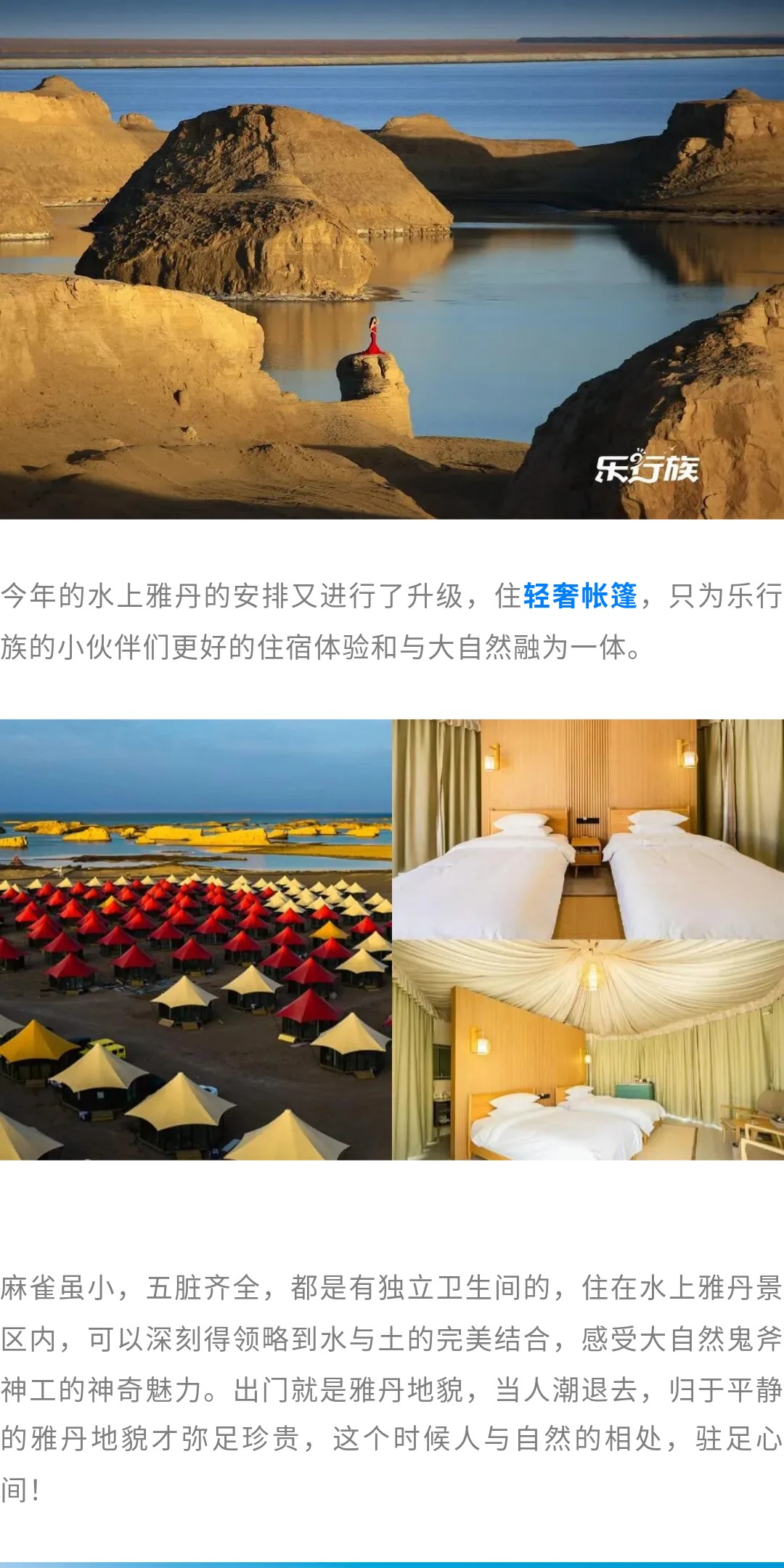 第五晚水上雅丹景区内轻奢帐篷独卫双床房、