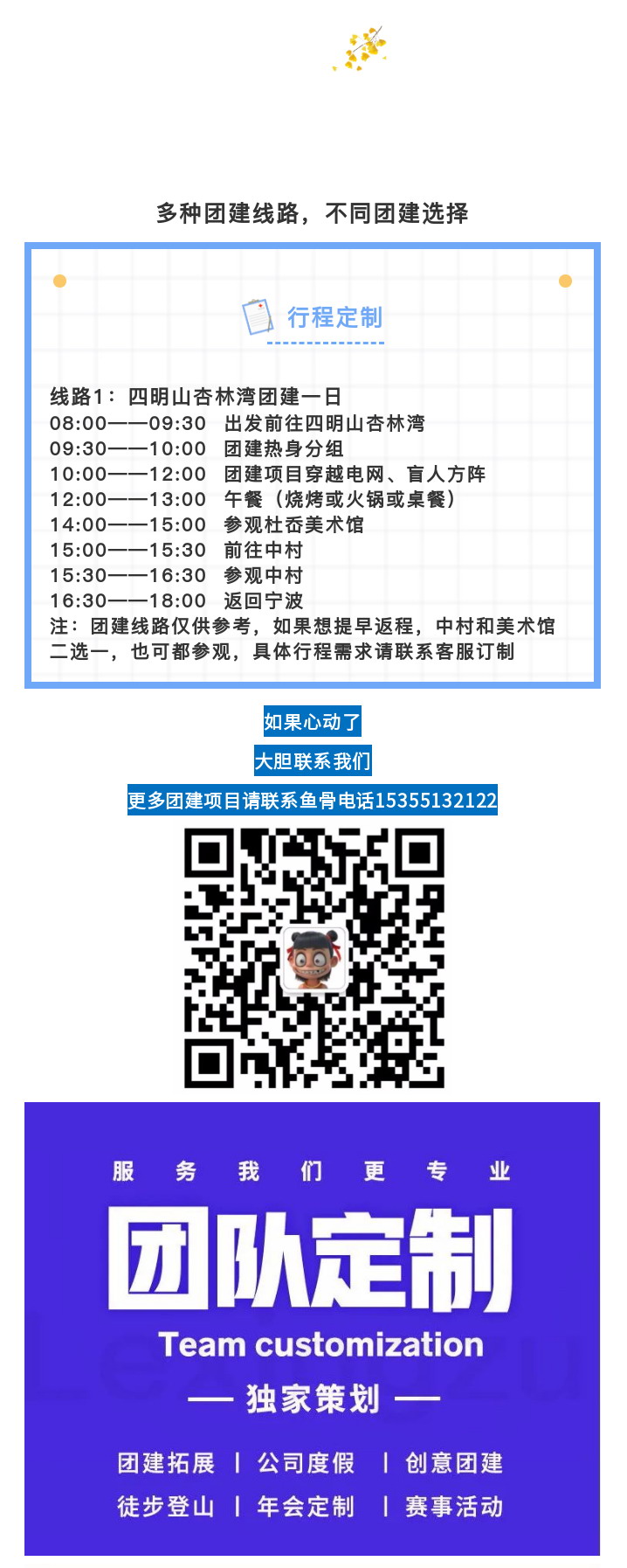 注:团建线路仅供参考,具体行程需求请联系客服订制