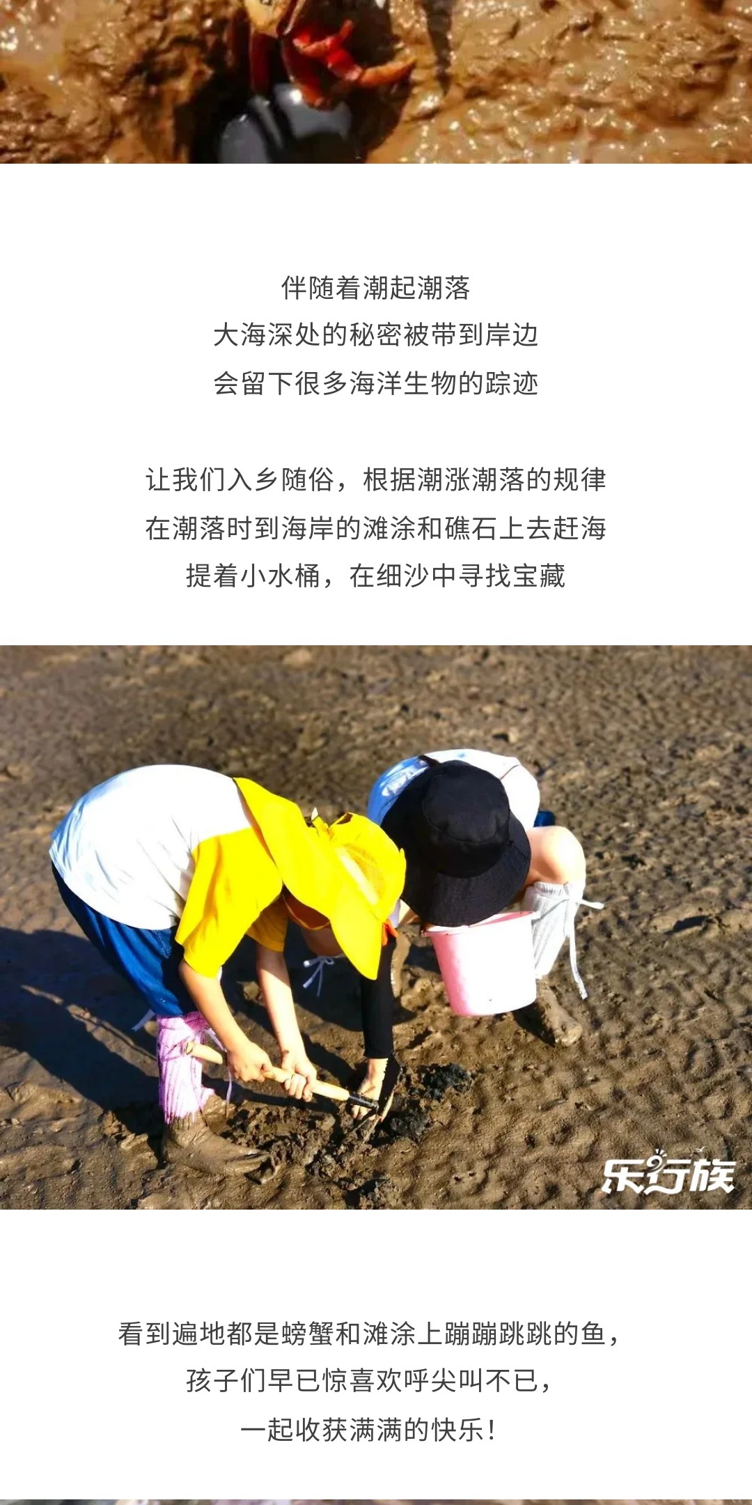 15:30-18:30滩涂赶海体验,探寻大海的秘密啦~去泥滩上撒欢,眼疾手快抓螃蟹,捡泥螺,当一次小小渔民。
