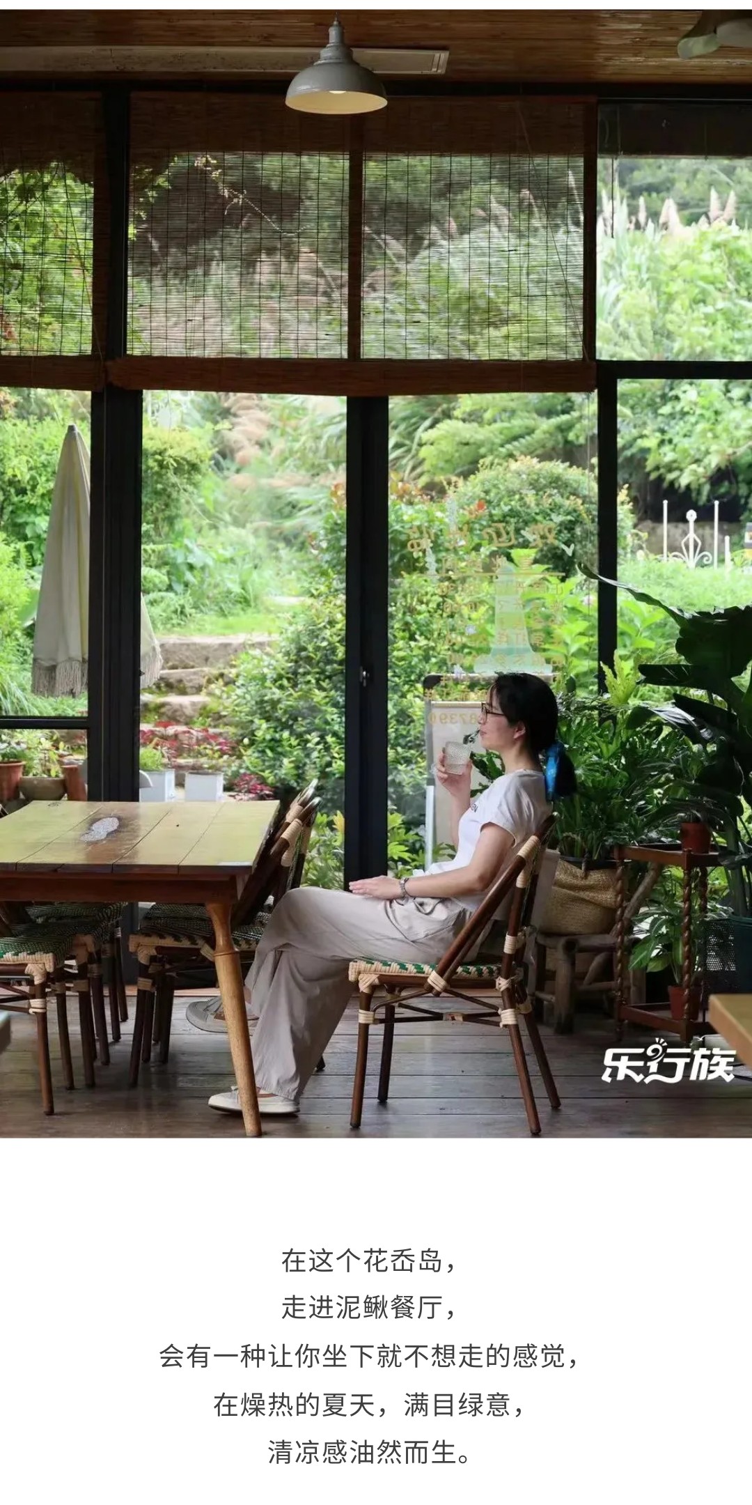 10:30前往泥鳅餐厅,这里由一座座静逸的小屋组成,屋里屋外都被绿植包围,吹着空调,满目都是绿色,拍照打卡,放空自己,修整修整。
