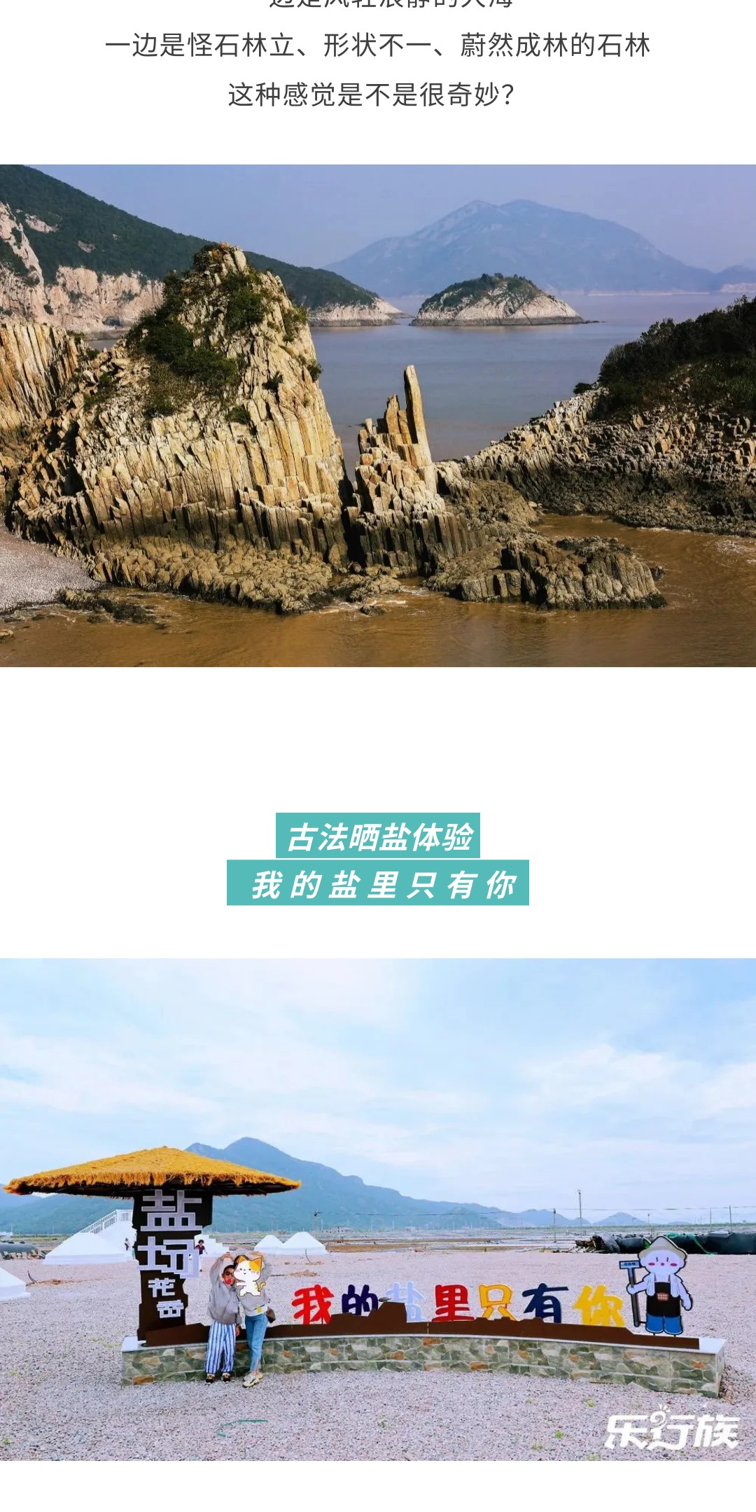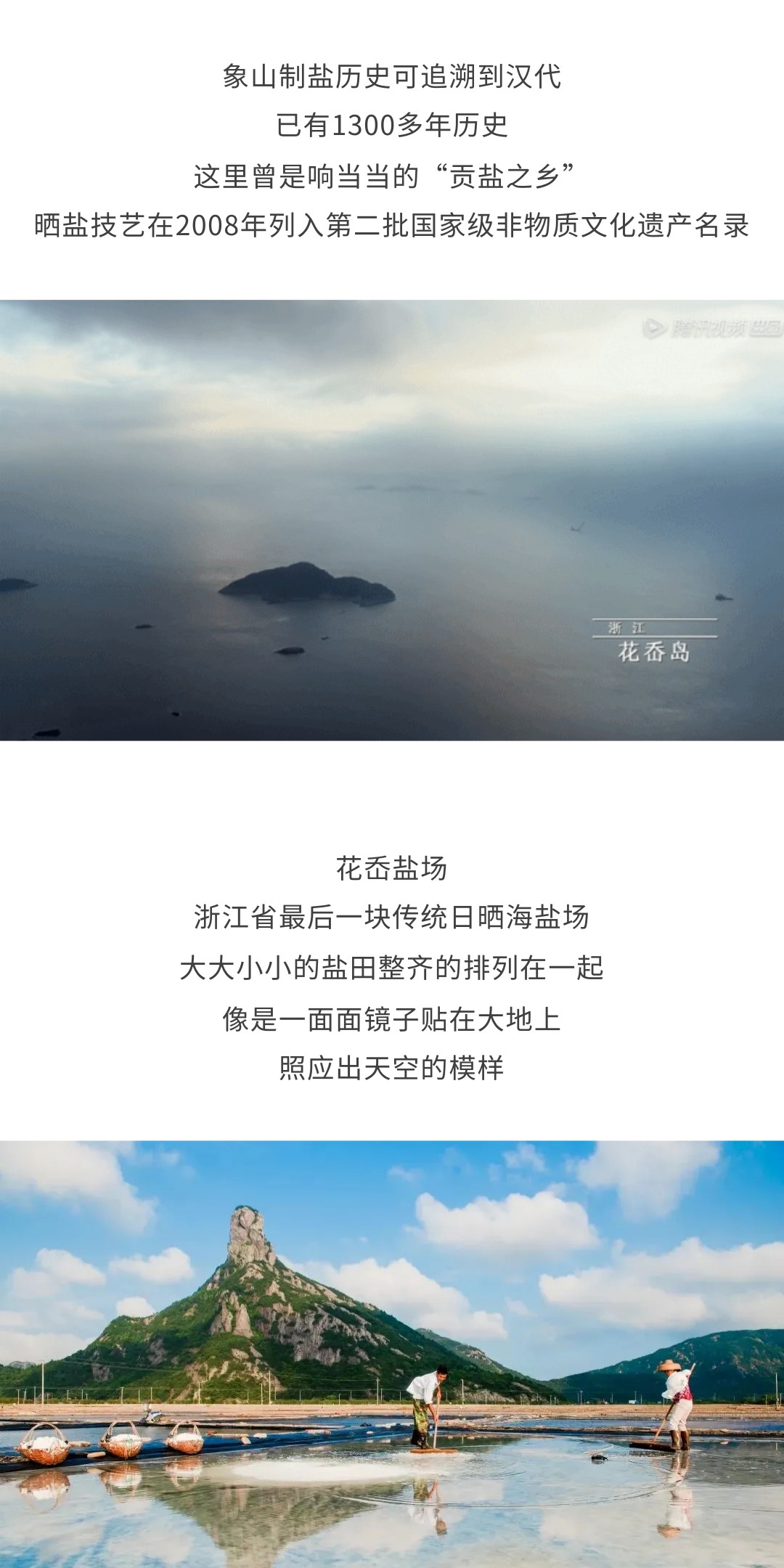 花岙岛上保留着象山境内一块原始晒盐场,在这里我们可以了解:海水为什么是咸的?去盐文化馆,通过影像了解关于盐背后的故事,在盐农的带领下来到晶莹剔透的盐田里,体验晒盐收盐的环节和步骤采集盐,还能用小玻璃瓶留一瓶盐留作纪念。