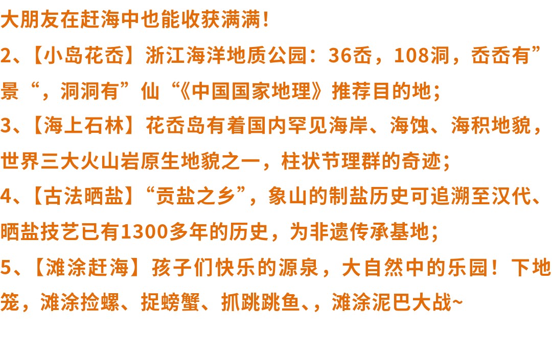 1、全程往返车费(有运营证的正规旅游车)(可自驾) 2、田野花岙营地轻奢帐篷(两张1.35米宽的床)(独卫有空调)含早(帐篷有限,先报先得,如果没有轻奢帐篷,会换成民宿或房车营地退100元一个成人,想要民宿的可以在报名时备注) 3、第一天营地中餐泥鳅餐厅+第一天晚餐户外龙虾宴+第二天中餐 4、沙滩门票+滩涂赶海体验+下地笼体验 5、非遗晒盐体验费用 6、花岙岛船票 7、花岙岛石林景区门票 8、领队及水枪眼镜等活动道具等组织成本 儿童价说明:1.5米以下儿童不含住宿和石林门票,其他等同于大人。1.2以下石林免门票,1.2-1.5米儿童门票约20元自理,费用以实际出票为准。一大一小报名需补单房差350元 【福利】 1、参加活动成员赠送乐行族魔术巾 2、乐行族旅行社责任险+赠送30万个人旅游意外险。 3、15人以上赠送篝火晚会+放烟花