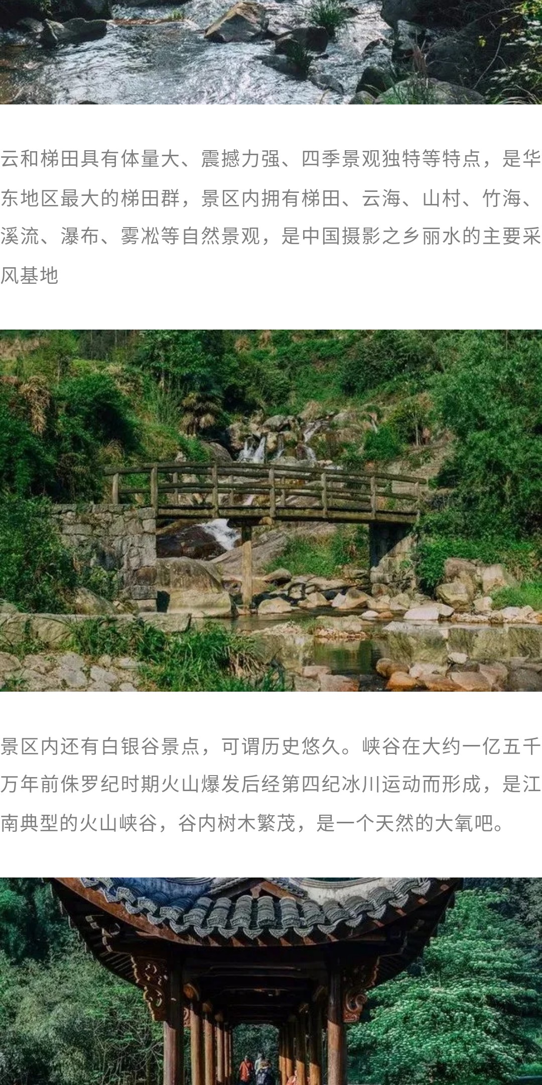 餐后我们前往云和梯田,先游览九曲云环景点,这里是云和梯田最佳观景台,在这里可以沿着婉转的步道,进入梯田,拍照取景,参观美丽的云和梯田。随后我们回到小型停车场,往上走有一座亭台楼阁,上面有表演、有戏曲,歌颂着云和梯田的今年的大丰收。欣赏完后我们前往景区农家住宿。